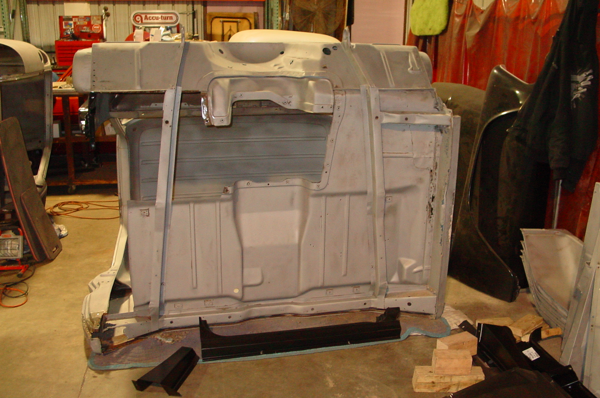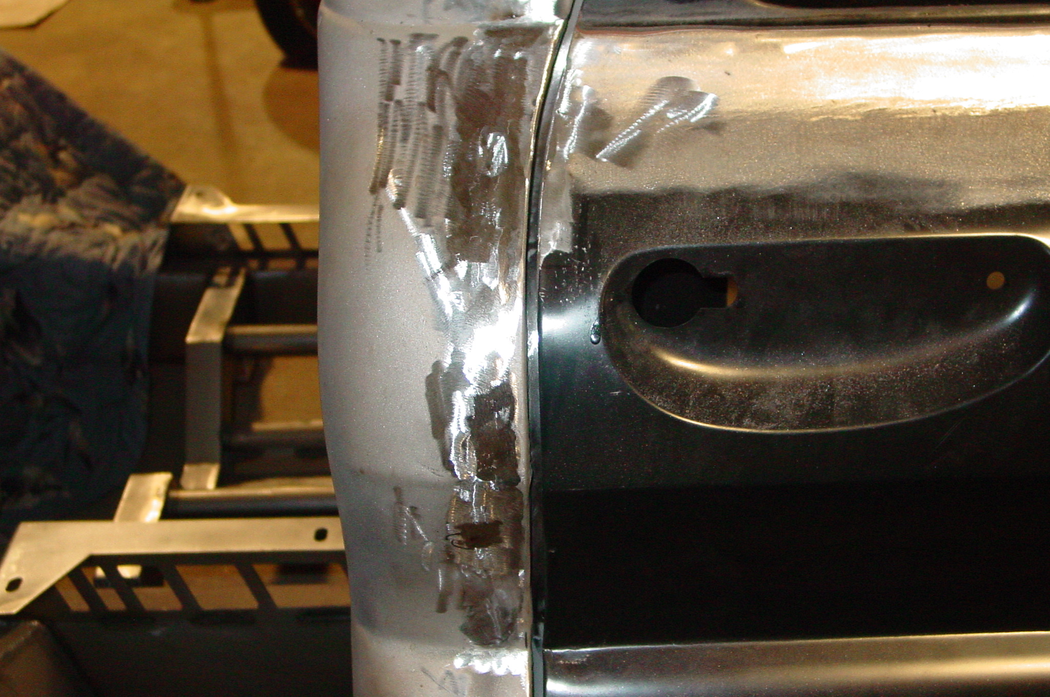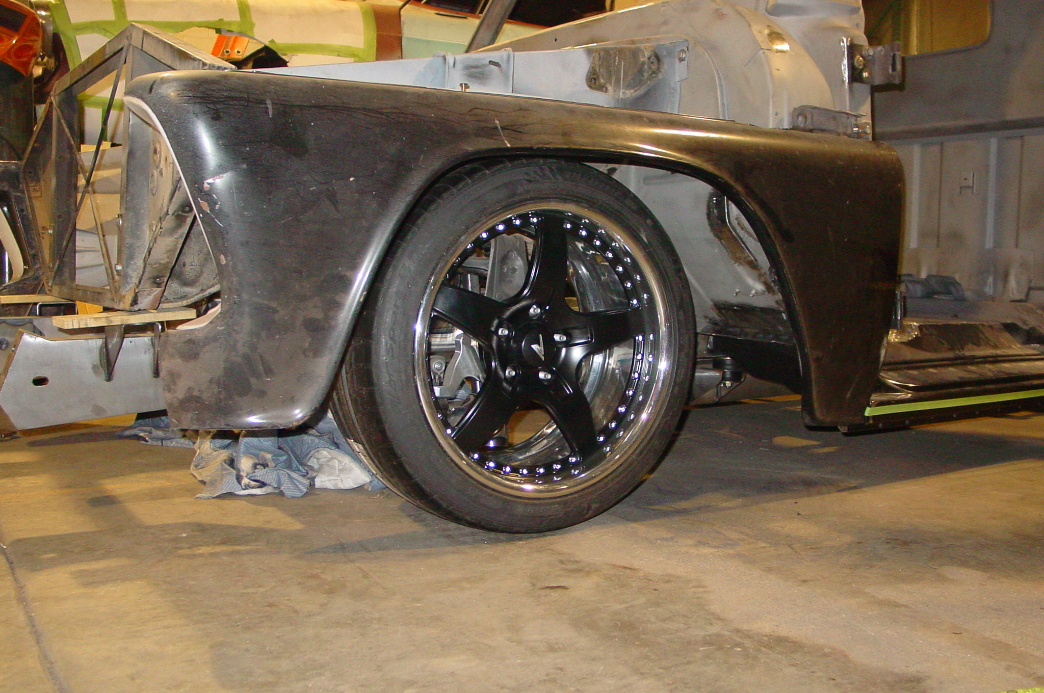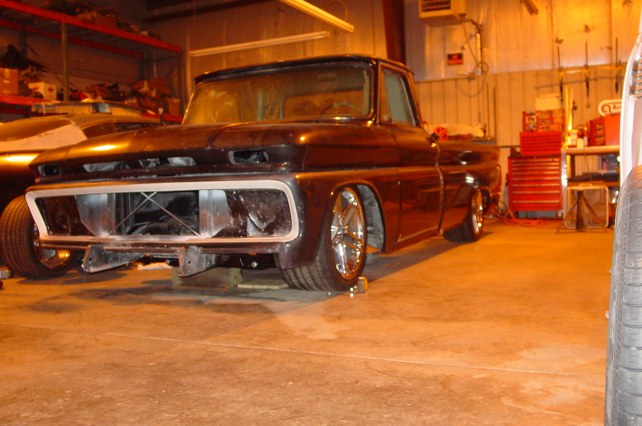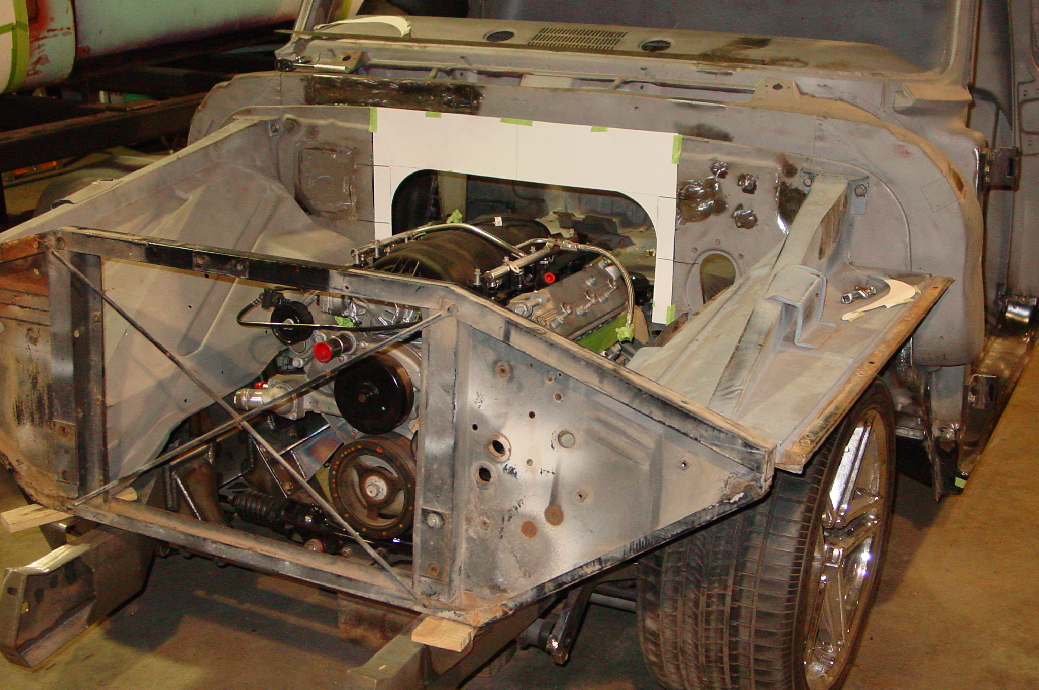 After blasting the old paint off we found a lot of filler over the rust holes. We removed the old rusted metal and replaced them with new steel. Now that the body is solid, the modifications have begun. -- Firewall, inner fenders, front fenders, front bumper, rear bumper, tailgate, and rear wheel opening.