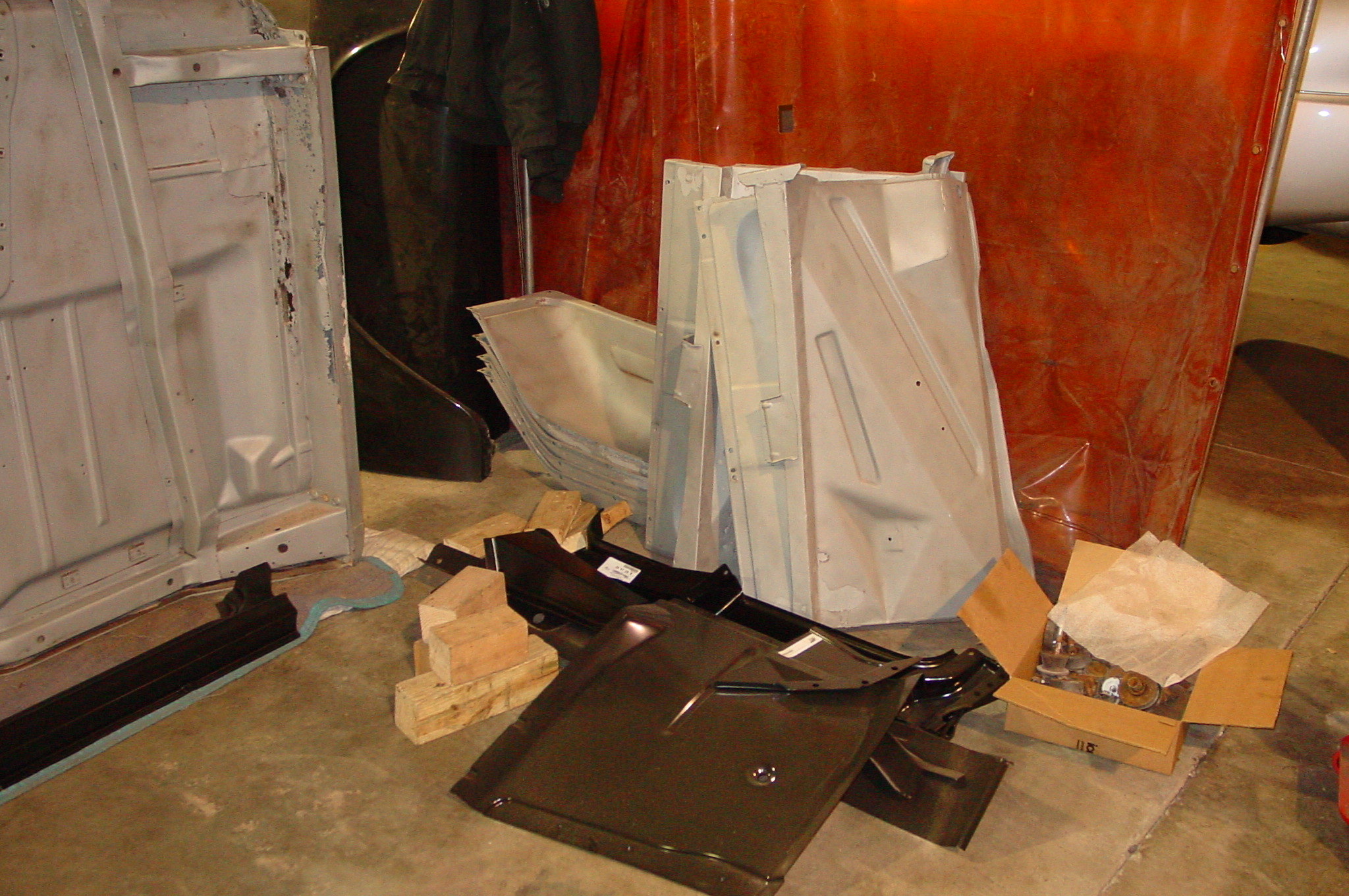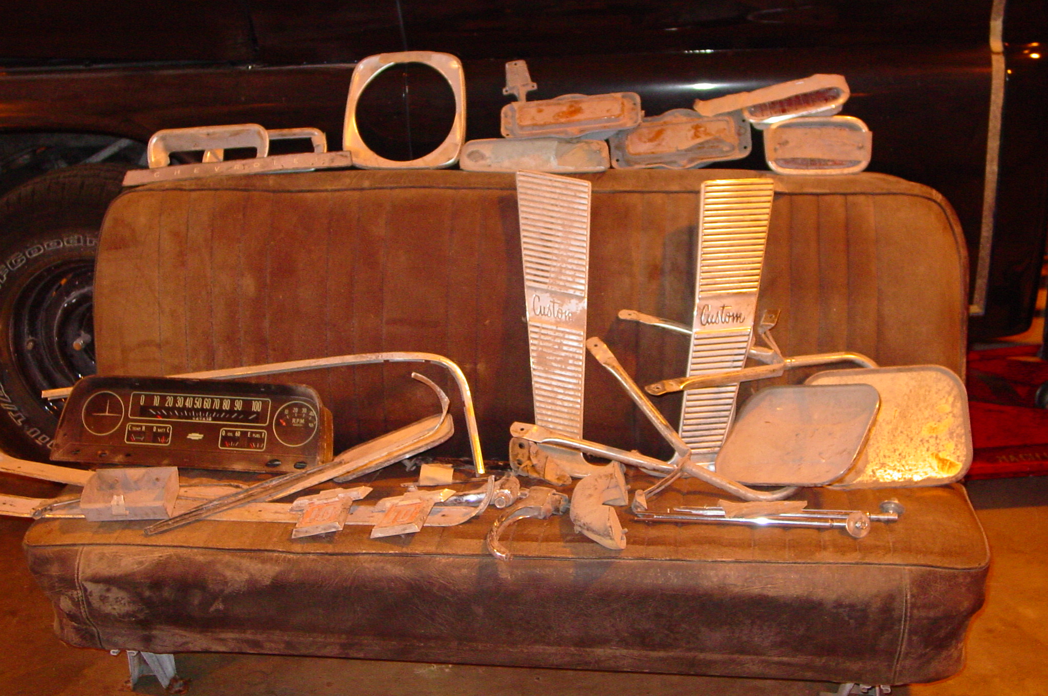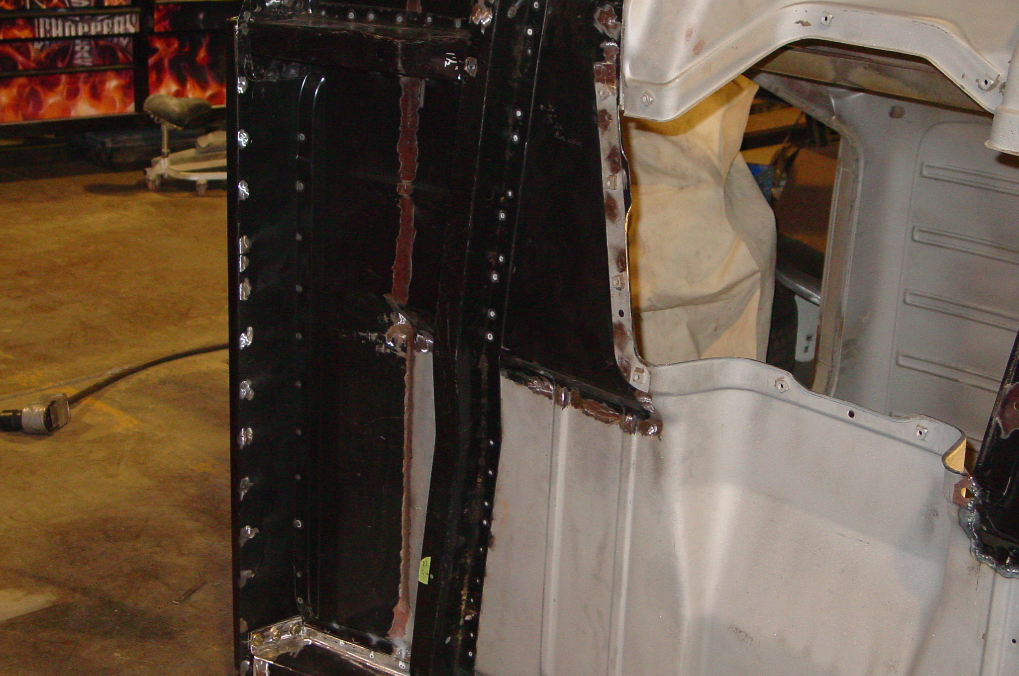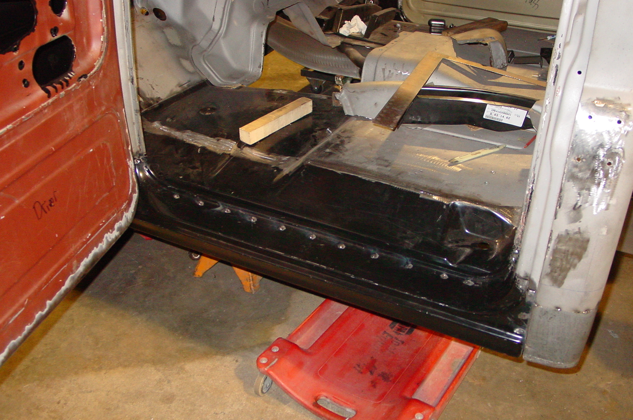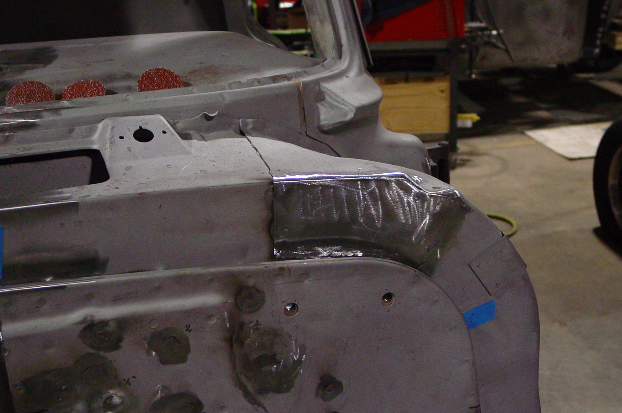 After blasting the old paint off we found a lot of filler over the rust holes. We removed the old rusted metal and replaced them with new steel. Now that the body is solid, the modifications have begun. -- Firewall, inner fenders, front fenders, front bumper, rear bumper, tailgate, and rear wheel opening.