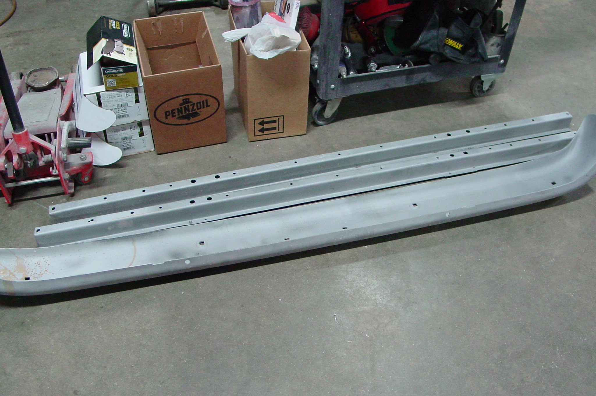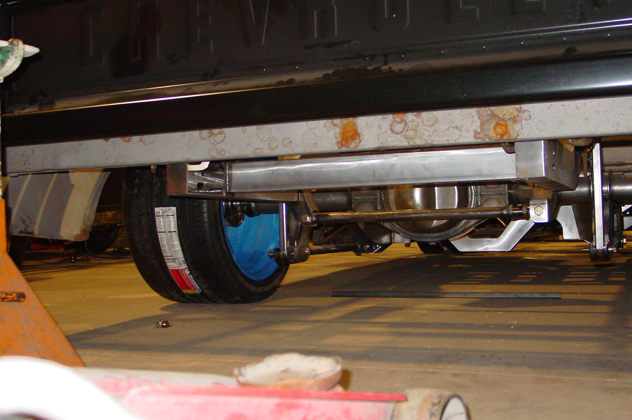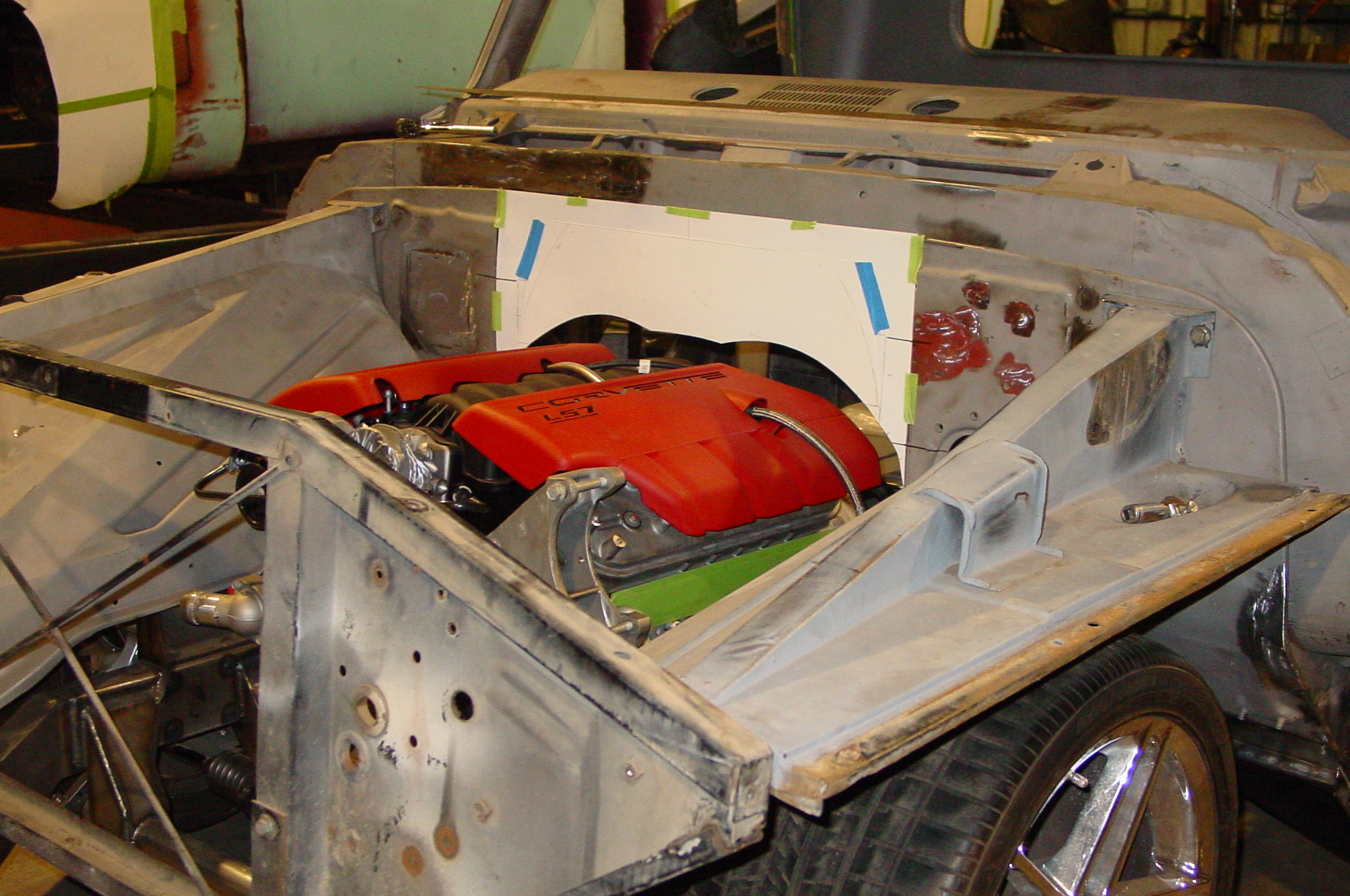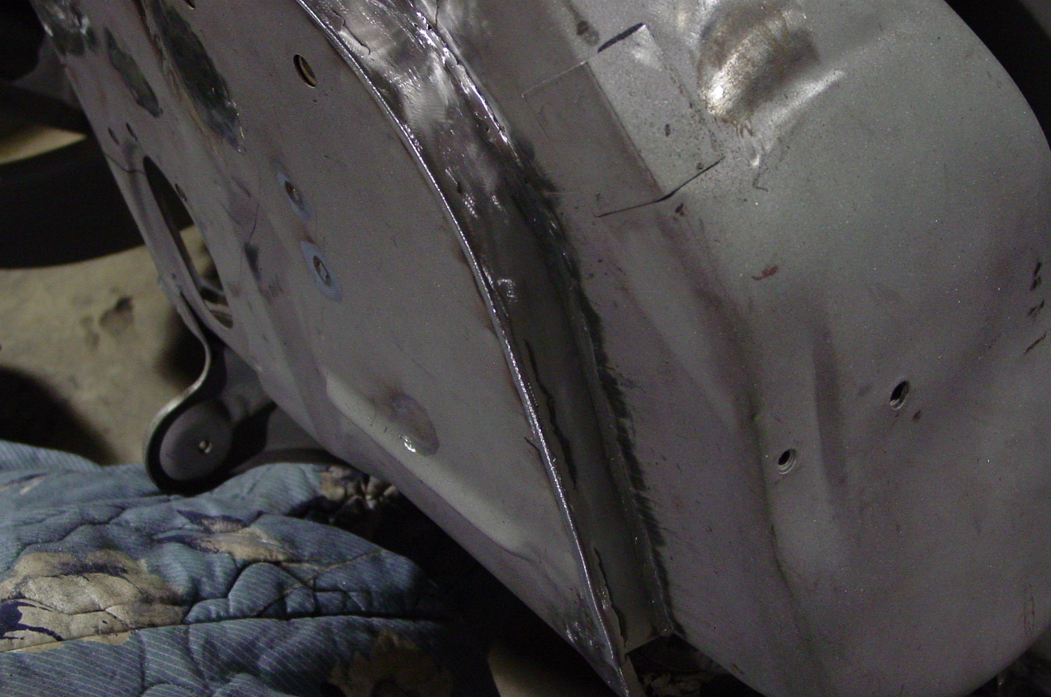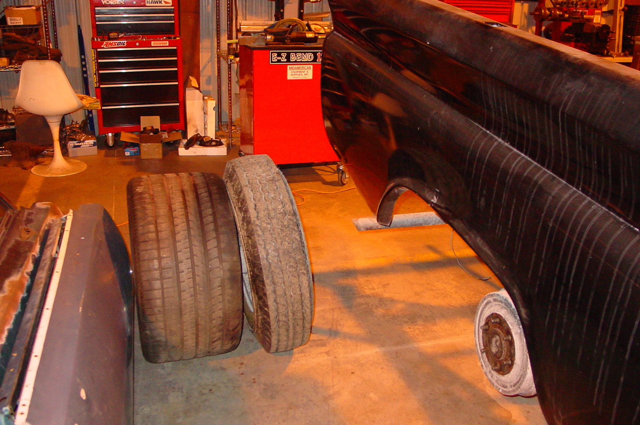 After blasting the old paint off we found a lot of filler over the rust holes. We removed the old rusted metal and replaced them with new steel. Now that the body is solid, the modifications have begun. -- Firewall, inner fenders, front fenders, front bumper, rear bumper, tailgate, and rear wheel opening.